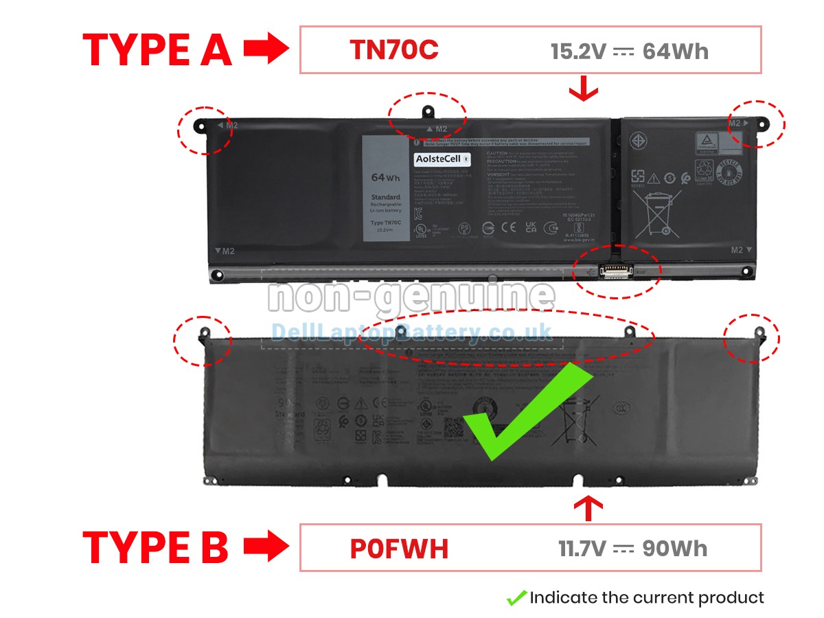 Thank you for purchasing a replacement Dell Inspiron 16 7640 2-IN-1 battery from DellLaptopBattery.co.uk Before placing your order, please make sure that the Inspiron 16 7640 2-IN-1 battery model you choose is suitable for your Dell laptop. Each battery has its model name (or part number, P/N) which you can find on the original battery. If you can't find a matching model number or compatible part number, please email us with the part number of your original battery or the exact name of your machine and we will recommend the correct battery for you.