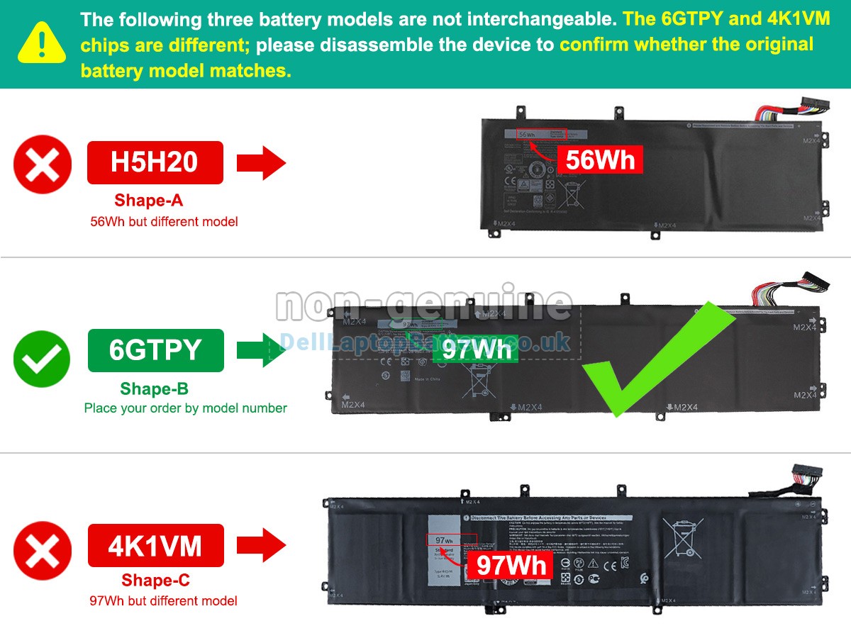 All batteries sold on DellLaptopBattery.co.uk are replacement parts. DellLaptopBattery.co.uk doesn't affiliate with any of the original manufacturers. Any registered trademarks or model names listed above are identified as purposes of showing compatibility only.
