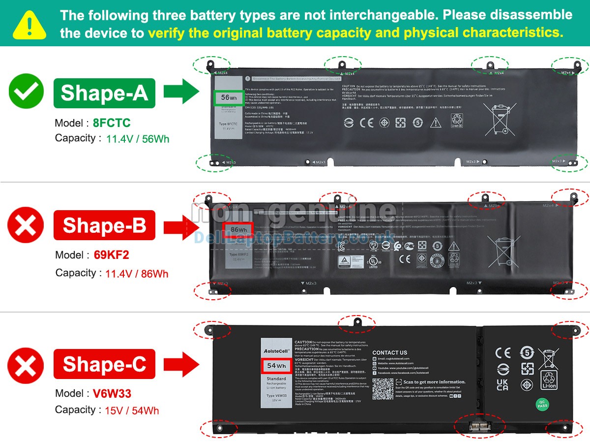 All batteries sold on DellLaptopBattery.co.uk are replacement parts. DellLaptopBattery.co.uk doesn't affiliate with any of the original manufacturers. Any registered trademarks or model names listed above are identified as purposes of showing compatibility only.
